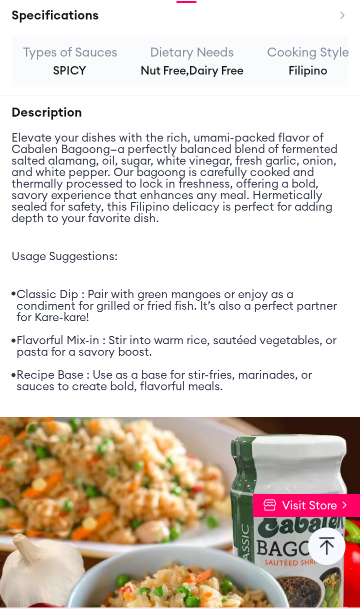 Bagoong is a Filipino condiment made from fermented seafood, primarily small shrimp or fish, that serves as a salty, umami-rich flavor enhancer. It can be used in cooking, such as in stews or sauces, or as a dipping sauce for fruits like green mangoes or for fried snacks. Common types include shrimp paste, known as bagoong alamang, and fish paste.